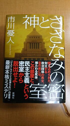 市川憂人 「神とさざなみの密室」気になっていたけどしばらく放置してしまっていた作品。 現政権への反対運動をするグループで活動する女子大生は目を覚ますとどこかの一室に監禁されていた。自身は拘束されているだけでなく、前にはグループの創設者の遺体…